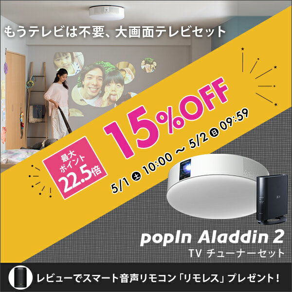 もう、テレビは不要 popIn Aladdin 2 × 推奨テレビチューナー 15%OFF 5/1(土)0:00から5/2(日)9:59まで テレビ 小型 地上波 ワイアレス 32型 40型 壁掛け スクリーンレス 天井 大画面 プロジェクター 単焦点 フルHD ホームシアター