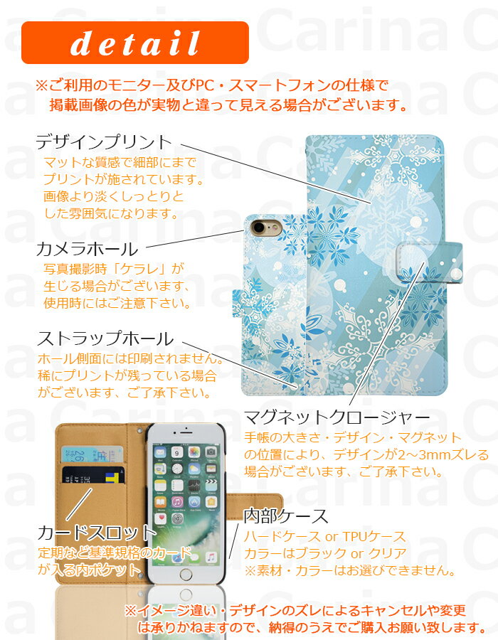 ケースの詳細 ケースのタイプ : 手帳型 ( ベルトあり ) 手帳の生地の素材 : 合皮レザー ( ポリウレタン ) ハードケースの素材 : ポリカボネート ハードケースのカラー : クリア もしくは ブラック ケースの機能と特徴 : カメラホール / マグネットクロージャー / カードスロット ハードケースで背面や角を守る事に併せて、スマホの前面を手帳カバーで覆います。