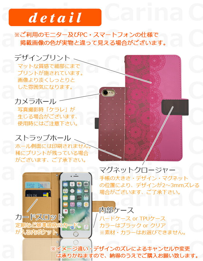 ケースの詳細 ケースのタイプ : 手帳型 ( ベルトあり ) 手帳の生地の素材 : 合皮レザー ( ポリウレタン ) ハードケースの素材 : ポリカボネート ハードケースのカラー : クリア もしくは ブラック ケースの機能と特徴 : カメラホール / マグネットクロージャー / カードスロット ハードケースで背面や角を守る事に併せて、スマホの前面を手帳カバーで覆います。