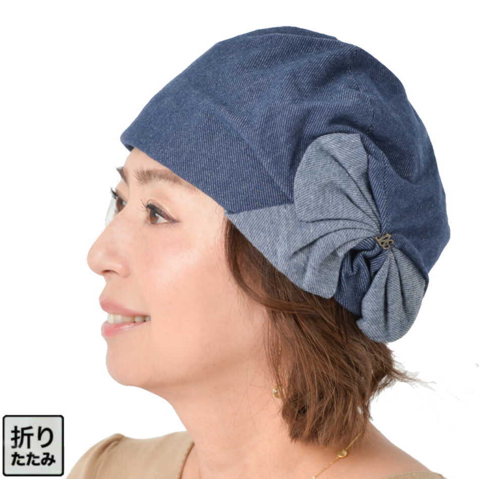 【送料無料】 帽子 レディース ハット 春夏 UV ミセス シニア 母の日 ギフト プレゼント uv UVカット デニム風ニット 型くずれ防止 折りたたみ たためる 紫外線 小顔効果 手洗い 洗える フリーサイズ 自転車とばない ウォーキング